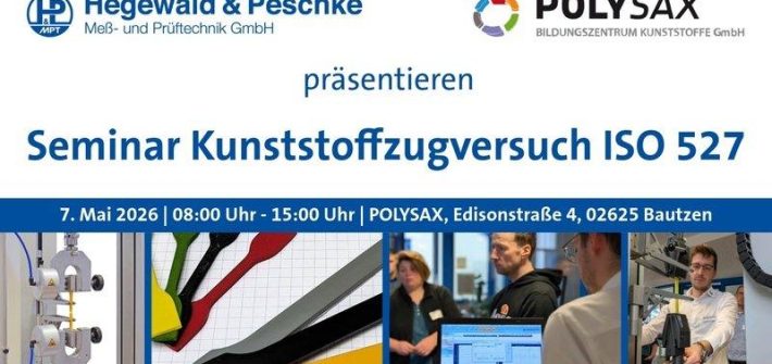 Inhalte des Seminars: Normkonforme Kunststoffprüfung nach ISO 527 Theorie & Praxis Änderungen in der Normung Wann ist ein Extensometer/ Dehnungsaufnehmer nötig? Zielstellung:Das Seminar richtet sich an Mitarbeiterinnen und Mitarbeiter in der Qualitätssicherung. Die Teilnehmerinnen und Teilnehmer erhalten Informationen über Kunststoffzugversuche nach ISO 527 zur Werkstoffprüfung. Sie können die entsprechenden Messungen selbständig durchführen und Unterlagen zur […]