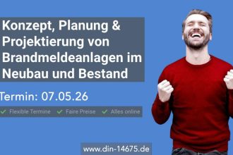 Planung von Brandmeldeanlagen im Neubau und Bestand Diese Online-Schulung eignet sich für Fachplaner und Facherrichter, die ihr Fachwissen über Brandmeldekonzepte und Planung von BMA vertiefen oder auffrischen möchten. Planer und Errichter erhalten in diesem Seminar alle wichtigen Informationen, die sie zum Erstellen eines Brandmelde- und Alarmierungskonzeptes und einer kompetenten Planung benötigen. Unsere Referenten erarbeiten mit […]