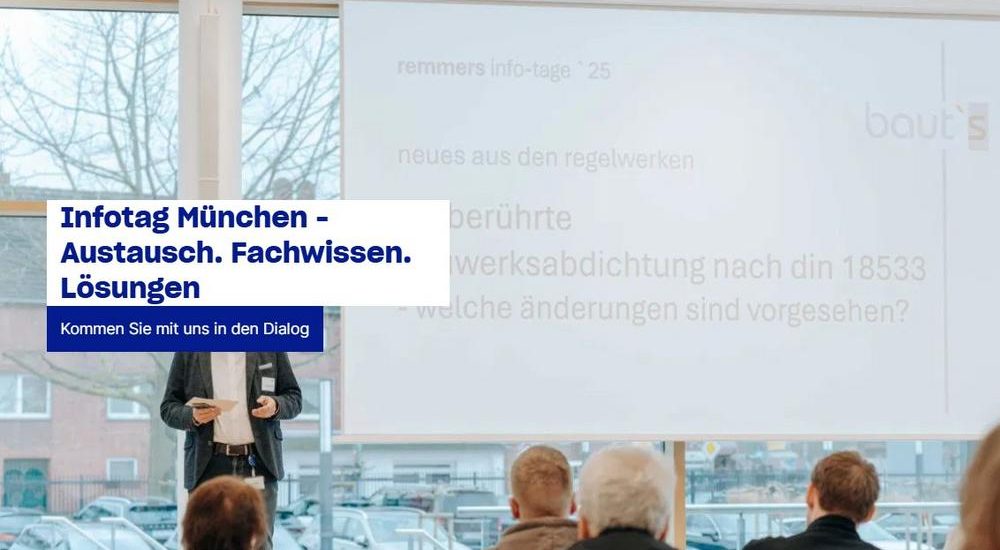 Erleben Sie einen praxisnahen Tag, der Techniken der erdberührten Bauwerksabdichtung im Neubau und im Altbau, den gezielten Einsatz Künstlicher Intelligenz in der Planung, sowie rechtssichere Nachträge in den Fokus nimmt. Anhand einer Remmers-Referenz wird Planungspraxis konkret greifbar.