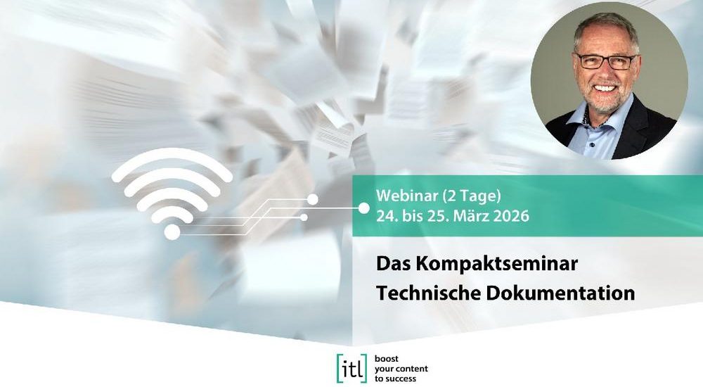 Statt bisher drei Tage nun neu zwei Tage mit den wichtigsten Themen der Technischen Kommunikation. Das 2-tägige itl-Kompaktseminar Technische Dokumentation bietet Ihnen gebündelt 40 Jahre Praxis-Know-how.
