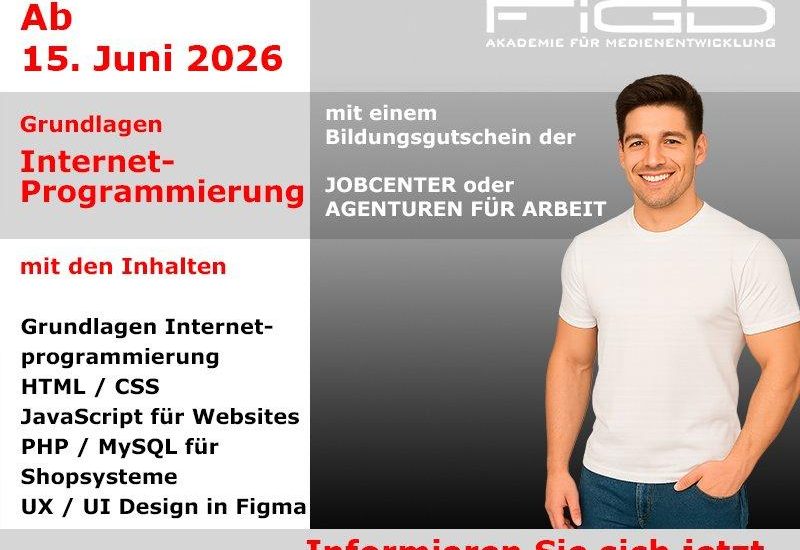 Wer sich beruflich neu orientieren und in einem zukunftsstarken IT-Bereich Fuß fassen möchte, findet mit der Weiterbildung Grundlagen Internetprogrammierung an der FiGD Akademie einen praxisnahen Einstieg in die moderne Web- und Softwareentwicklung. Die Weiterbildung wird als Onlinekurs durchgeführt und richtet sich an Menschen, die digitale Technologien verstehen, Webseiten und interaktive Anwendungen entwickeln und sich gezielt auf Tätigkeiten im Bereich Webentwicklung, Software-nahe Projektarbeit oder digitale Medien vorbereiten möchten. Besonders attraktiv ist dabei die Möglichkeit der vollständigen Förderung über den Bildungsgutschein, wodurch der Einstieg in die IT-Berufswelt auch finanziell gut planbar wird.