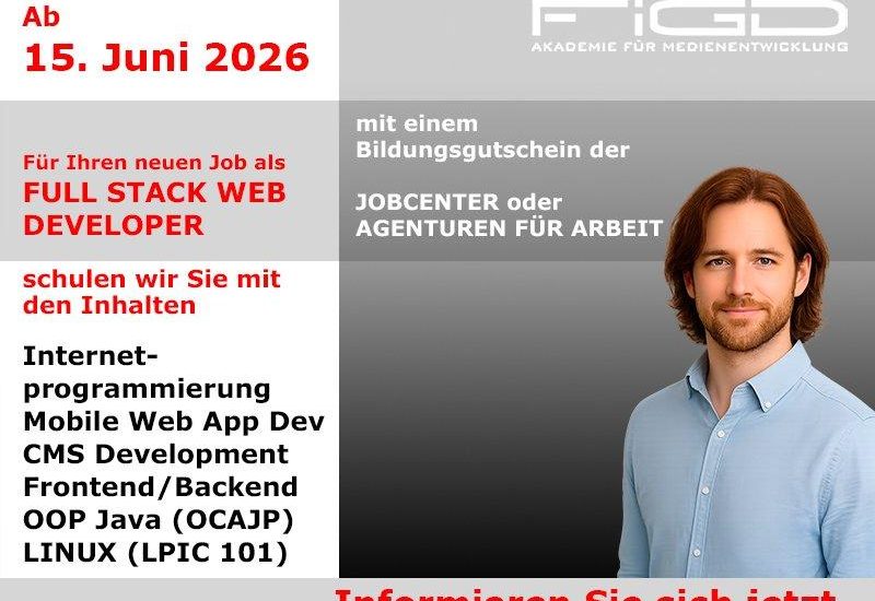 Wer sich beruflich neu orientieren und moderne Web- und Softwaresysteme professionell entwickeln möchte, findet mit der Weiterbildung zum Full Stack Web Developer an der FiGD Akademie eine praxisnahe und arbeitsmarktorientierte Qualifizierung. Die Weiterbildung wird in Präsenz durchgeführt und richtet sich an Menschen, die sich umfassend im Bereich Frontend, Backend, Datenbanken, Websysteme und mobile Anwendungen weiterentwickeln möchten. Besonders attraktiv ist dabei die Möglichkeit, die Weiterbildung über den Bildungsgutschein vollständig fördern zu lassen.