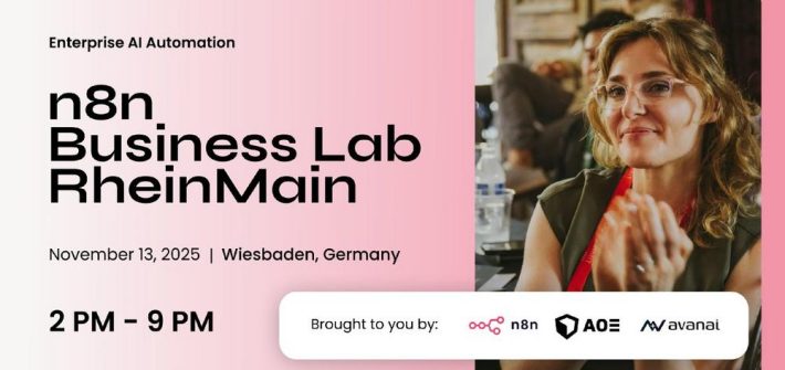 Join us in the Rhein‑Main region (Frankfurt area, Germany) for a hands-on n8n event designed for business and technical leaders from big organizations looking to unlock the power of workflow automation. We’re AOE and Avanai, expert partners helping organizations implement n8n at scale, and we’re co-hosting this event together with n8n. Whether you’re exploring your first use cases […]