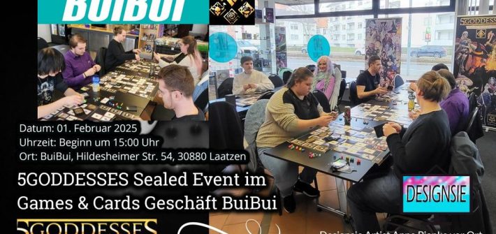 Am 01. Februar 2025 lädt BuiBui – Games & Cards in Laatzen zu einem besonderen 5GODDESSES Sealed Deck Event ein. BuiBui 5Goddesses event Datum: 01. Februar 2025Uhrzeit: Beginn um 15:00 UhrOrt: BuiBui – Games & Cards, Hildesheimer Str. 54, 30880 LaatzenFormat: Sealed Deck Was erwartet Sie?Sie erhalten vier Gallery Packs (eins davon kostenlos) und stellen […]