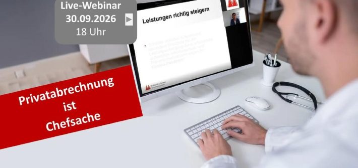 Am Mittwoch, den 30.09.2026, um 18 Uhr findet wieder unser kostenfreies Live-Seminar für Ärzte statt. Thema des Live-Webinars:“Privatabrechnung ist Chefsache – das müssen Sie als Mediziner wissen” Das wird bei der Abrechnung häufig übersehen Benchmarks im Bereich Privatabrechnung adäquate Anwendung der Steigerungssatzes Honorarverluste vermeiden – richtiger Umgang mit den Kostenträgern Begründungen der Honoraransprüche Zeit für Ihre Fragen und Diskussion […]
