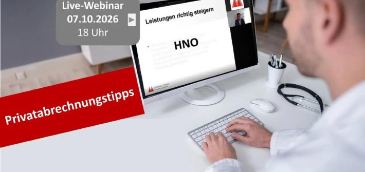 Privatabrechnungs-Seminar für HNO Ärzte am 07.10.2026 Live-Webinar “Privatabrechnungstipps in der Hals-Nasen-Ohren-Heilkunde” Ihr Nutzen Sie erfahren anhand von Praxisbeispielen, welche Honorareinbußen durch Dokumentationslücken entstehen, wie ausführliche Beratungen, ein Behandlungsfall und Sachkosten bestmöglich abgerechnet werden können und erhalten eine Übersicht in den großen und kleinen Gebührenrahmen. Die passende und „adäquate“ Anwendung des Steigerungssatzes sowie richtige Begründung Ihrer Honoraransprüche […]