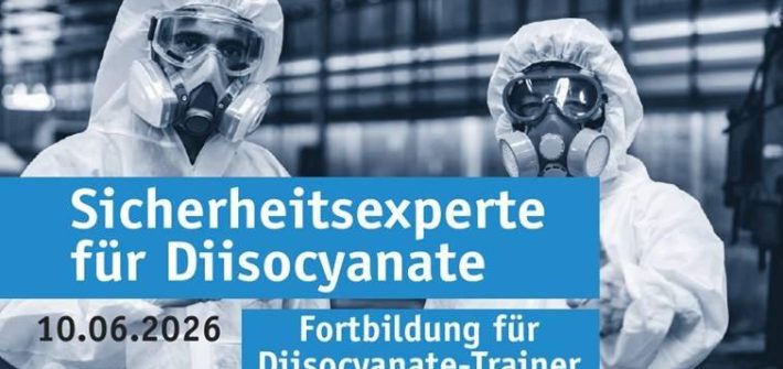 Der Lehrgang „ Sicherheitsexperte für Diisocyanate (FSK)“ ist eine aufbauende Fortbildung für Mitarbeitende, die den Train-the-Trainer-Lehrgang erfolgreich absolviert haben und bereits Diisocyanate-Schulungen gemäß Anhang XVII der REACH-Verordnung durchführen – oder über eine vergleichbare Qualifikation verfügen, die zur Durchführung dieser Schulungen berechtigt.Die Fortbildung vermittelt erweiterte fachliche und regulatorische Kenntnisse für den sicheren, gesundheitsgerechten und rechtskonformen Umgang […]