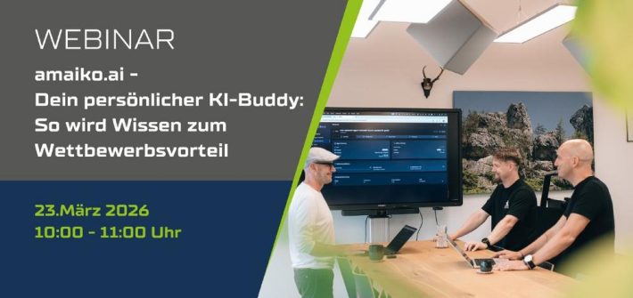 amaiko.ai – Dein persönlicher KI-Buddy, der Unternehmenswissen endlich nutzbar macht 30 Minuten Live-Webinar mit praxisorientierten Anwendungsfällen Stell Dir vor, ein erfahrener Kollege verlässt das Unternehmen – und mit ihm verschwinden Jahre an Know-how in Chats, E-Mails und Köpfen. Musstest Du schon mal stundenlang nach verlorenem Wissen suchen, das eigentlich kommuniziert war? Das kostet nicht nur […]