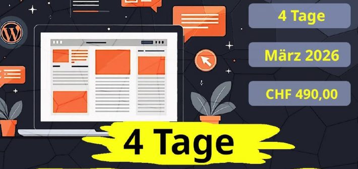 Der 4-tägige Workshop richtet sich an KMU, Selbständige, Vereine und Teams, die ihre Webseite mit WordPress selbst planen, erstellen und laufend aktualisieren möchten. WordPress-Grundlagen: Installation, Dashboard, Benutzerrollen, Seiten vs. Beiträge, Medienverwaltung. Design & Themes: Auswahl eines geeigneten Themes, Arbeiten mit Block-Editor oder Page-Builder, Menüs, Widgets und responsive Layouts für Desktop, Tablet und Smartphone. Inhalte erstellen […]