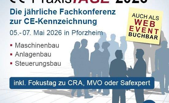 Safety für Entwickler: Pflichtwissen für Konstrukteure Die eintägige Online-Konferenz vermittelt das entscheidende Know-how, das für die sichere und normgerechte Konstruktion von Maschinen erforderlich ist. Die Teilnehmer profitieren von der Expertise praxiserprobter Fachleute und erhalten relevantes Normenwissen, das in der Konstruktion unverzichtbar ist. Für wen? Konstruktion, Elektroplanung und technische Dokumentation Projektmanagement und Projektleitung Produktsicherheit (CE-Beauftragte, Compliance […]