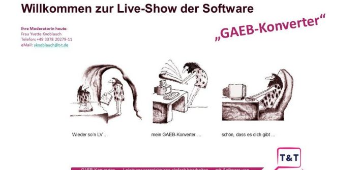 Nehmen Sie an einer kurzen Online-Vorstellung unserer Software „GAEB-Konverter“ teil und gewinnen Sie einen ersten Eindruck von unserem speziellen „Werkzeug“ zum schnellen, effizienten und GAEB-konformen Erstellen, Bearbeiten und Reparieren von GAEB-Dateien sowie zum Konvertieren von Leistungsverzeichnissen zwischen den Formaten GAEB 90/2000/XML, Excel, Word, Access, PDF, RTF, dBase, Ö-Norm, Datanorm,UGL und REB. Für eine Anmeldung nutzen […]