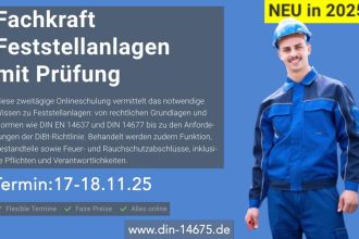 Diese zweitägige Onlineschulung vermittelt das notwendige Wissen zu Feststellanlagen: von rechtlichen Grundlagen und Normen wie DIN EN 14637 und DIN 14677 bis zu den Anforderungen der DiBt-Richtlinie. Behandelt werden zudem Funktion, Bestandteile sowie Feuer- und Rauchschutzabschlüsse, inklusive Pflichten und Verantwortlichkeiten. Fehler bei der Planung, dem Betrieb oder der Wartung von Feststellanlagen können schwerwiegende Folgen haben, […]