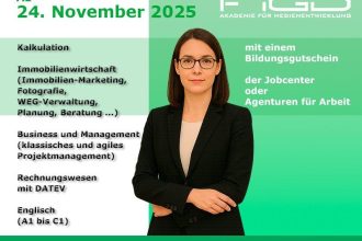 Digitales Arbeiten ist in Unternehmen längst Standard – wer Office-Tools souverän beherrscht und organisatorisch den Überblick behält, wird zur gefragten Fachkraft. Die Weiterbildung „Microsoft Office 2021 und Büroorganisation“ der FiGD Akademie bereitet Sie in einem strukturierten Onlinekurs gezielt auf Tätigkeiten im kaufmännischen und organisatorischen Bereich vor. Der Kurs ist zu 100 % förderfähig über den […]