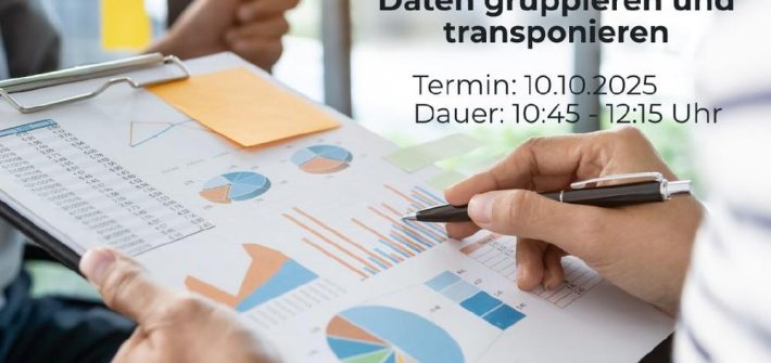 In der Modulschulung „Fortgeschrittene Datenbearbeitung: Daten gruppieren und transponieren. Fehlerbehandlung“ lernen Sie fortgeschrittene Methoden der Datenorganisation und Fehlerbehandlung kennen. Optimieren Sie Ihre Datenstrukturen, indem Sie Informationen zusammenfassen und umstrukturieren. Ein zentrales Thema ist das Datentransponieren sowie das Datenentpivotieren, um Tabellen flexibel neu anzuordnen und für weiterführende Analysen nutzbar zu machen. Zudem erfahren Sie, wie Sie […]