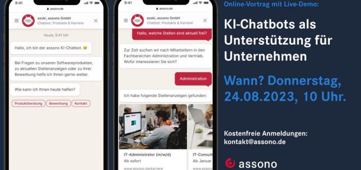 Am 24. August um 10 Uhr haben wir einen Online-Austausch zum Thema „Nutzen von KI-Chatbots für Unternehmen“ geplant. In dem kostenlosen Zoom-Meeting sprechen unsere Chatbot-Experten mit Ihnen über die Vorteile eines KI-Chatbots, teilen Erfahrungswerte aus der Praxis und zeigen Ihnen eine Live-Demo. Eine zeitnahe und individuelle Bearbeitung von Kundenanliegen wird immer wichtiger, um den steigenden Erwartungen der Kunden […]