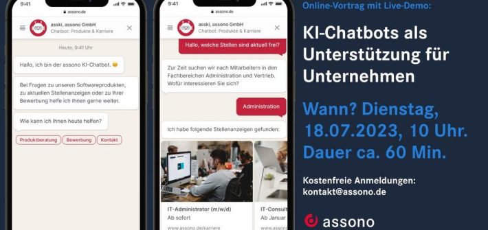 Am 18. Juli um 10 Uhr haben wir einen Online-Austausch zum Thema „Nutzen von KI-Chatbots für Unternehmen“ geplant. In dem kostenlosen Zoom-Meeting sprechen unsere Chatbot-Experten mit Ihnen über die Vorteile eines KI-Chatbots, teilen Erfahrungswerte aus der Praxis und zeigen Ihnen eine Live-Demo. Eine zeitnahe und individuelle Bearbeitung von Kundenanliegen wird immer wichtiger, um den steigenden Erwartungen der Kunden […]