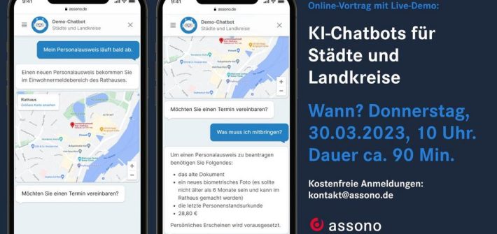 Am 30. März um 10 Uhr haben wir einen Online-Austausch zum Thema „Nutzen von KI-Chatbots für Städte und Landkreise“ geplant. In dem kostenlosen Zoom-Meeting sprechen unsere Chatbot-Experten mit Ihnen über die Vorteile eines KI-Chatbots für Städte und Landkreise, teilen Erfahrungswerte aus der Praxis und zeigen Ihnen eine Live-Demo. Viele Fragen, die Bürger an eine Stadt, […]