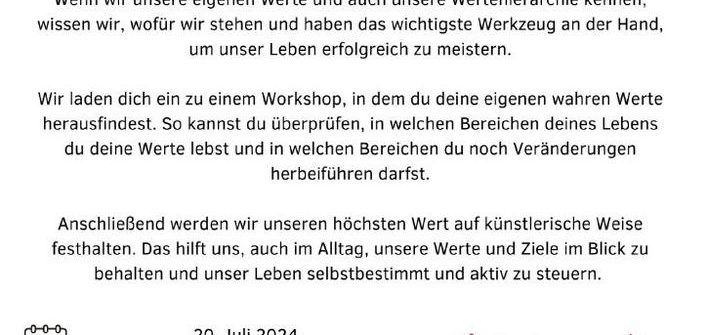 Werte sind unsere tiefsten Überzeugungen, Einstellungen und Leitmotive. Wenn wir unsere eigenen Werte und auch unsere Werte-Hierarchie kennen, wissen wir, wofür wir stehen und haben das wichtigste Werkzeug an der Hand, um unser Leben erfolgreich zu meistern. Wir laden dich herzlich ein zu einem Workshop, in dem du deine eigenen, wahren Werte herausfindest. So kannst […]