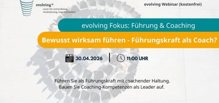 Führungskräfte sind stark gefordert. Sie spüren den Marktdruck in einem dynamischen und unsicheren Umfeld und die Anforderungen der Mitarbeitenden. Veränderungen sollen neben der Tagesarbeit realisiert werden. In Zeiten des Wandels ist NEUE Führung angesagt. Eine coachende Haltung ist wichtig, um Zusammenarbeit neu zu gestalten und Potentialentfaltung & Entwicklung der Mitarbeitenden zu begleiten. In unserem evolving […]