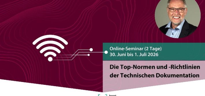 Die Top-Normen und ‑Richtlinien der Technischen Dokumentation30 Juni bis 1.Juli 2026, Online-SeminarReferent: Dieter Gust Das 2-tägige itl-Normenseminar gibt Ihnen den passenden Überblick über Normen, Richtlinien und gesetzliche Vorgabe aus dem Bereich der Technischen Dokumentation. Der itl-NormenGuide und eine umfassende Checkliste nach 82079 sind Bestandteil des Seminars. Der Grundansatz des Seminars beruht auf den Top 15 […]