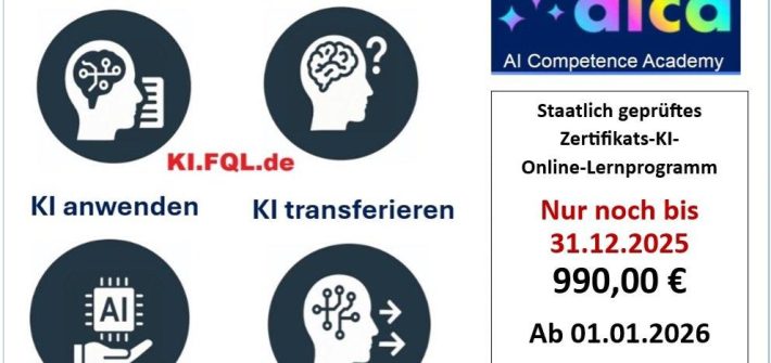 Künstliche Intelligenz verändert in rasantem Tempo, wie wir denken, arbeiten und entscheiden – in jedem Berufsfeld. Doch eines ist klar: Nur wer KI wirklich versteht, steuern und verantwortungsvoll einsetzen kann, bleibt auch in Zukunft handlungsfähig und wettbewerbsstark. Seit Oktober diesen Jahres bietet die AI Competence Academy Trainern, Beratern und Coaches, Unternehmern und Führungskräften sowie Office-Mitarbeitern eine KI-Online-Ausbildung, die […]